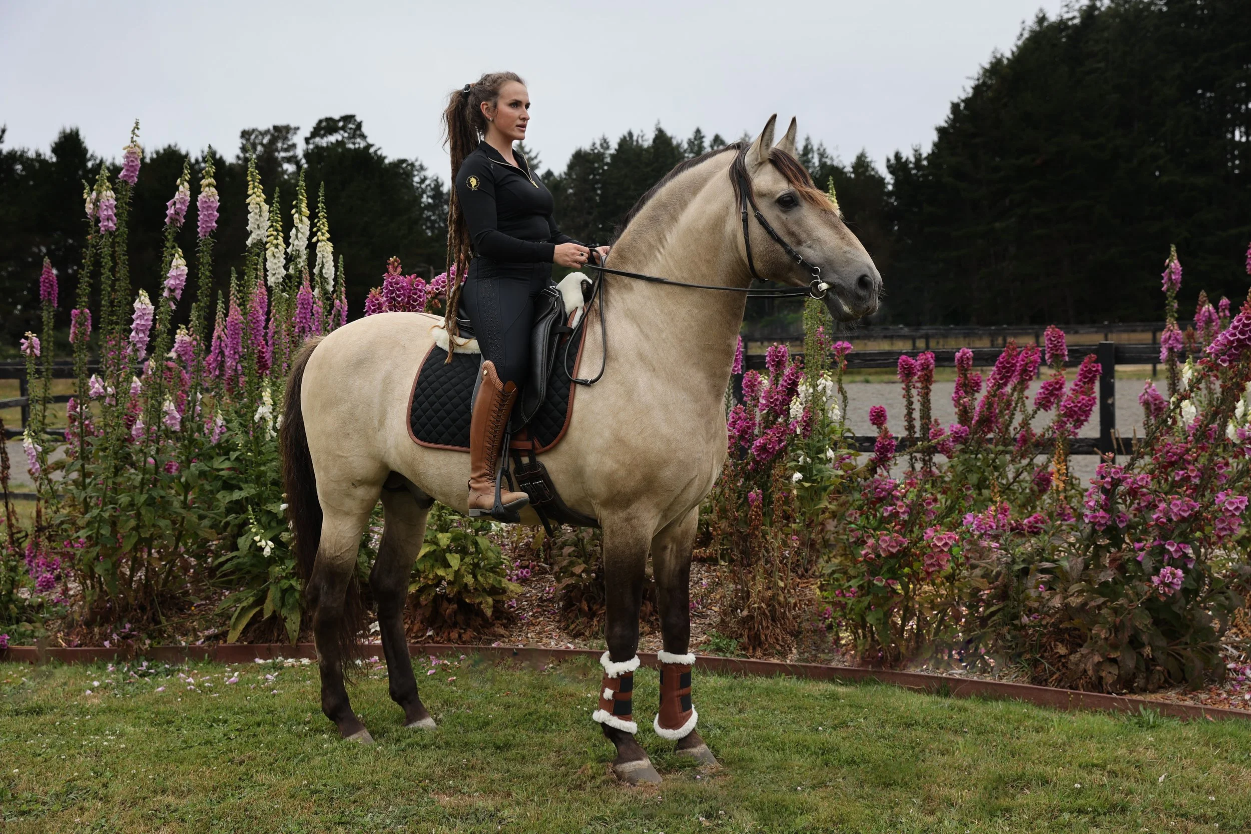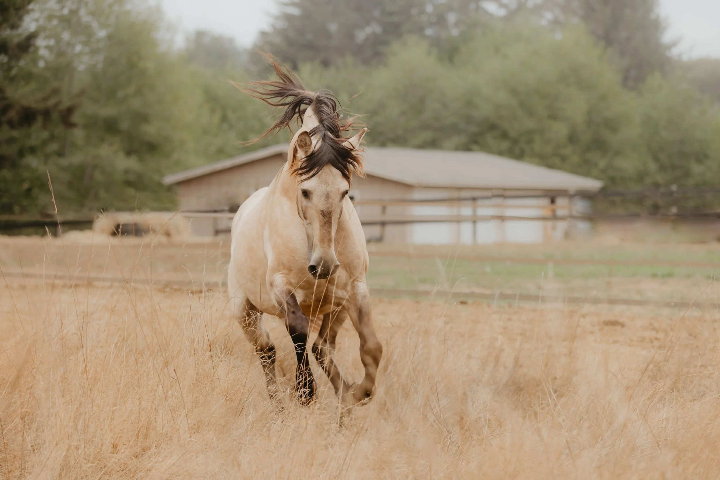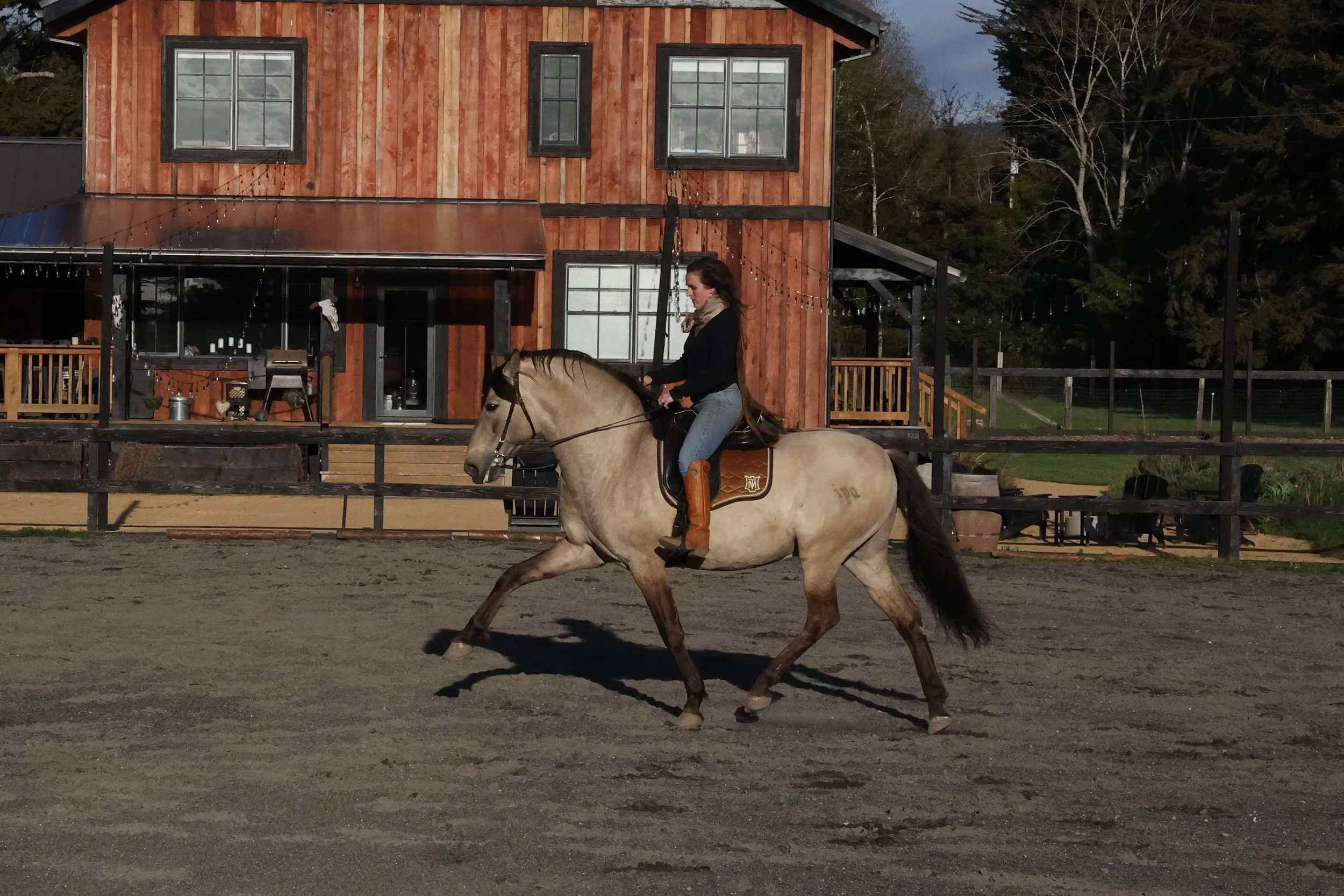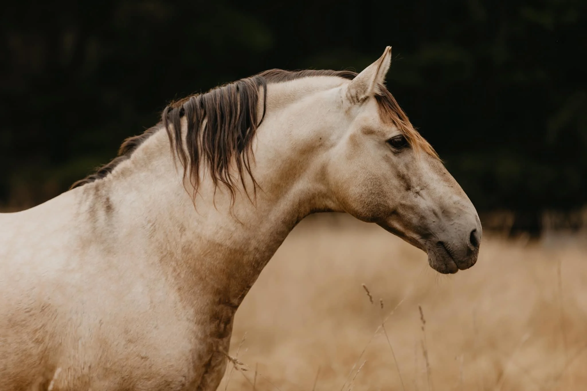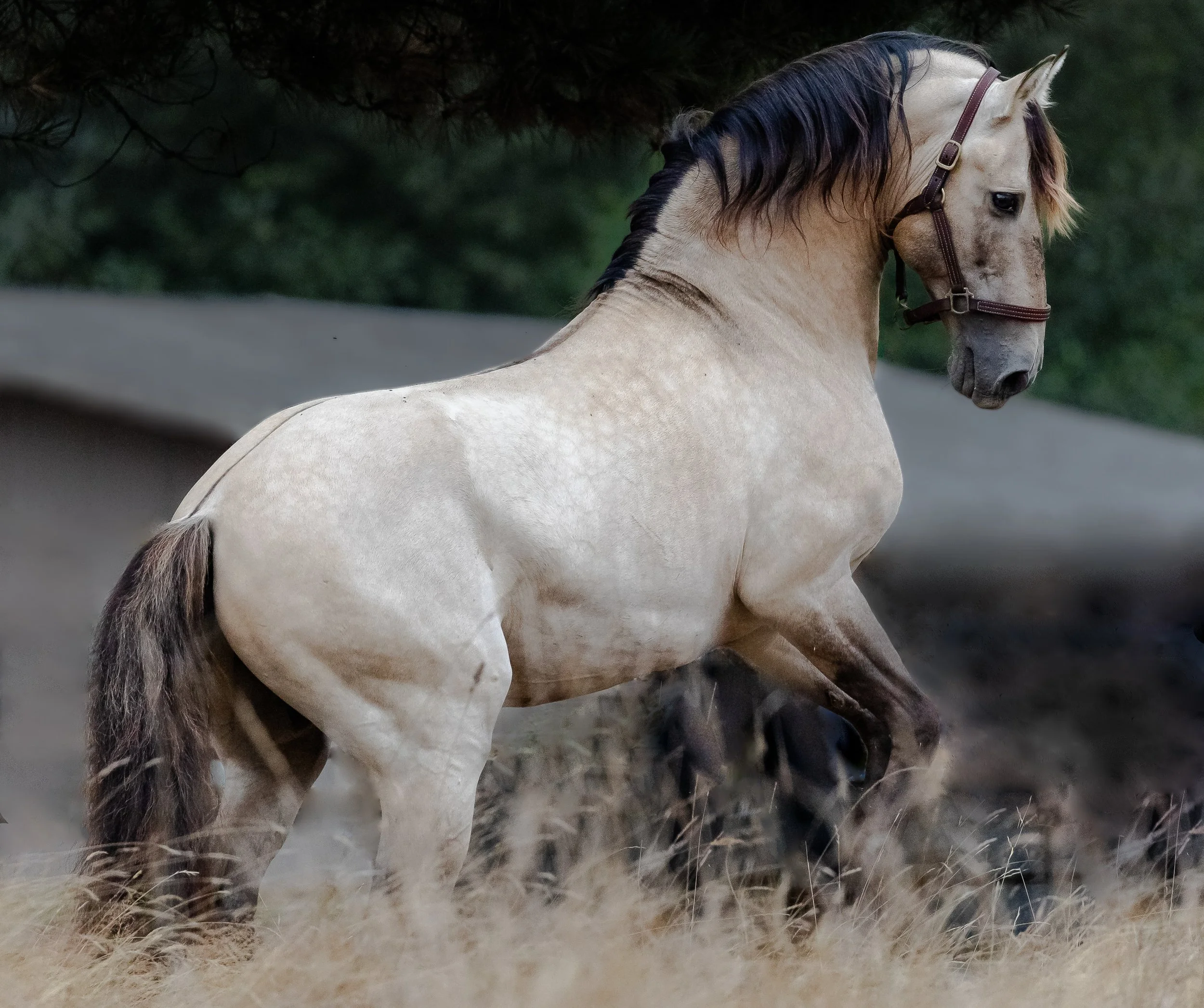 Beyond his rarity as a color producer, Canelo is an incredible sire: a consistent producer of bold, balanced, quality offspring who inherit his trainability and spectacular movement as well as his Dun genetics. Witnessing him is like seeing a baroque statue come to life, his incredible stature and presence is breathtaking. Canelo is a brilliant riding partner, being developed in classical dressage and solidly schooling all of PSG as well as having a remarkable ability for piaffe and passage. He is also being developed at liberty, and is proving to be able to stay connected even in the midst of a working ranch.